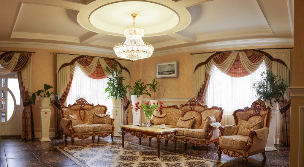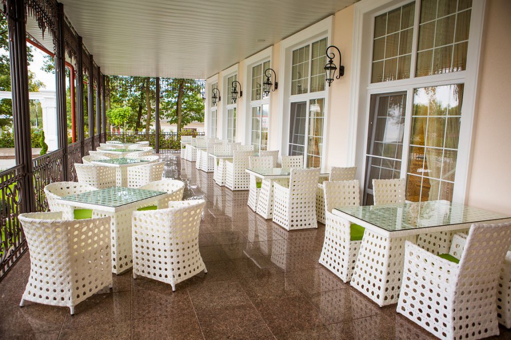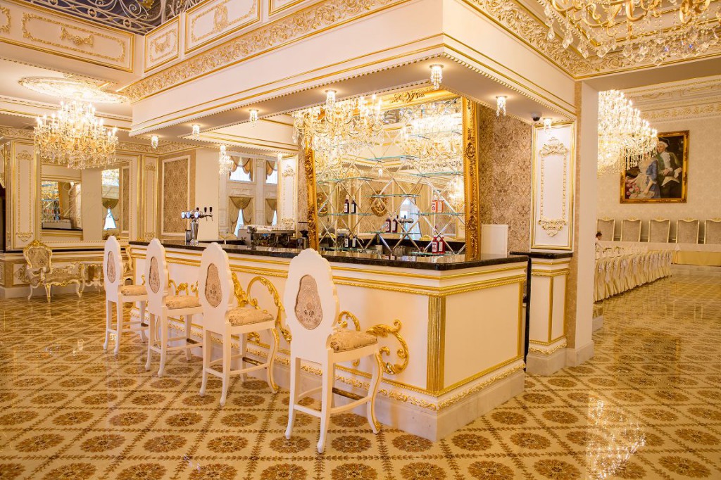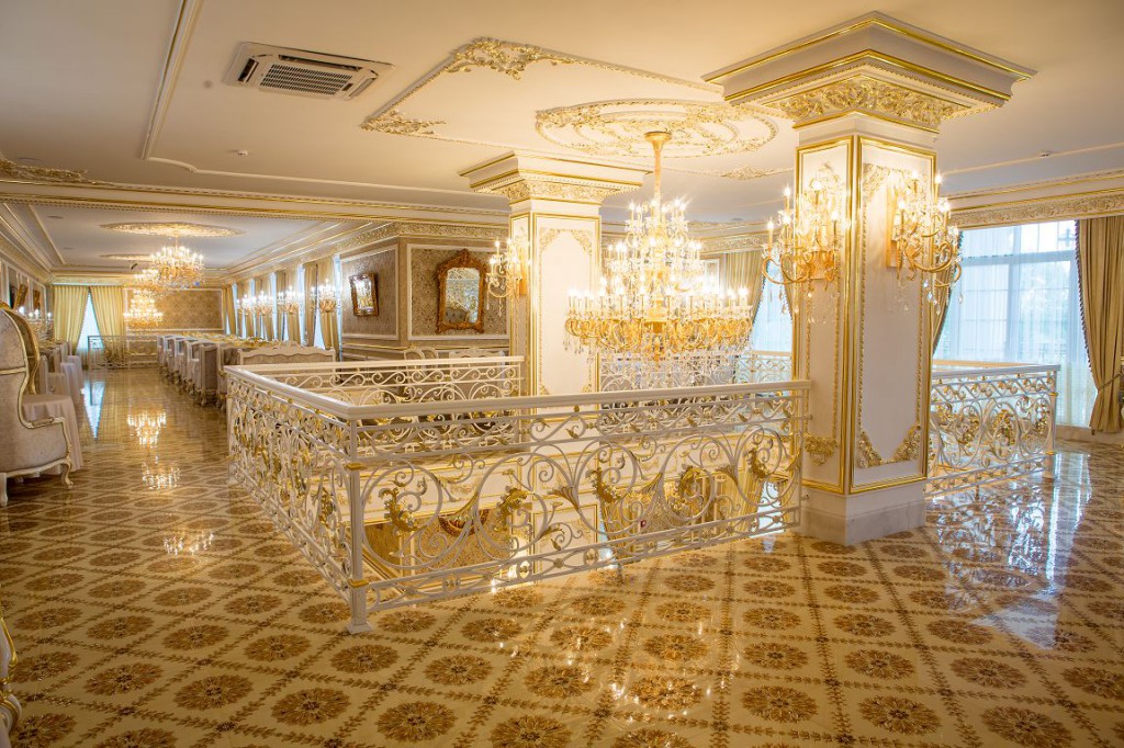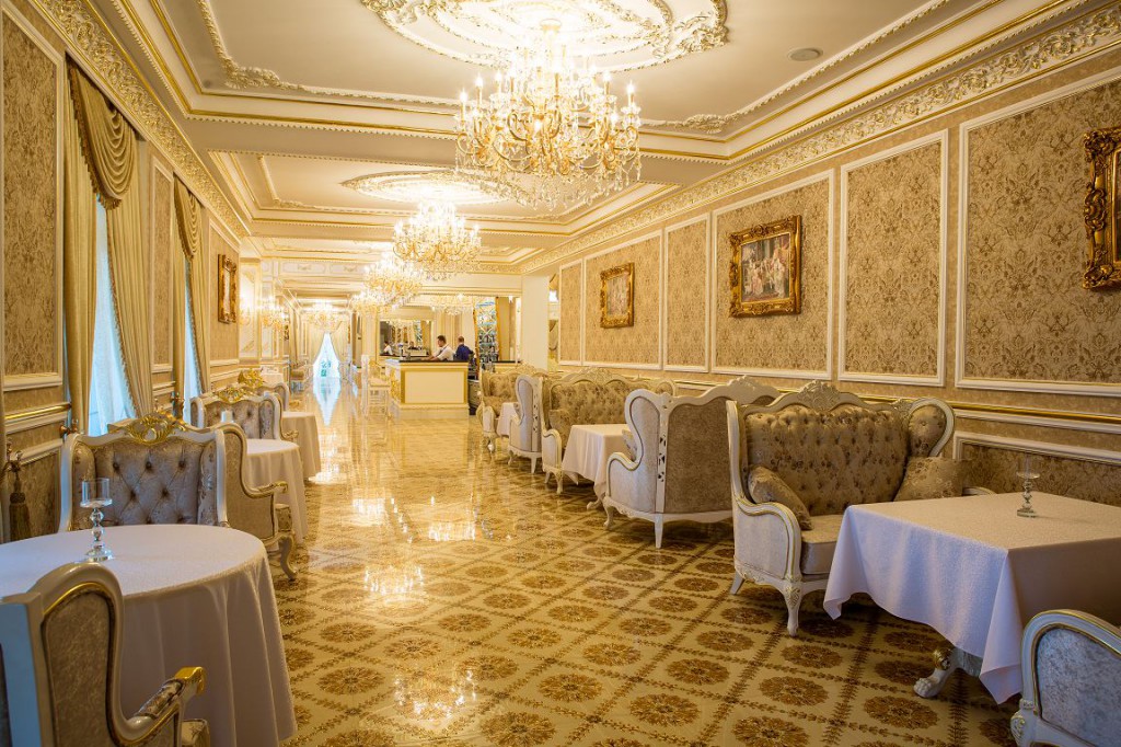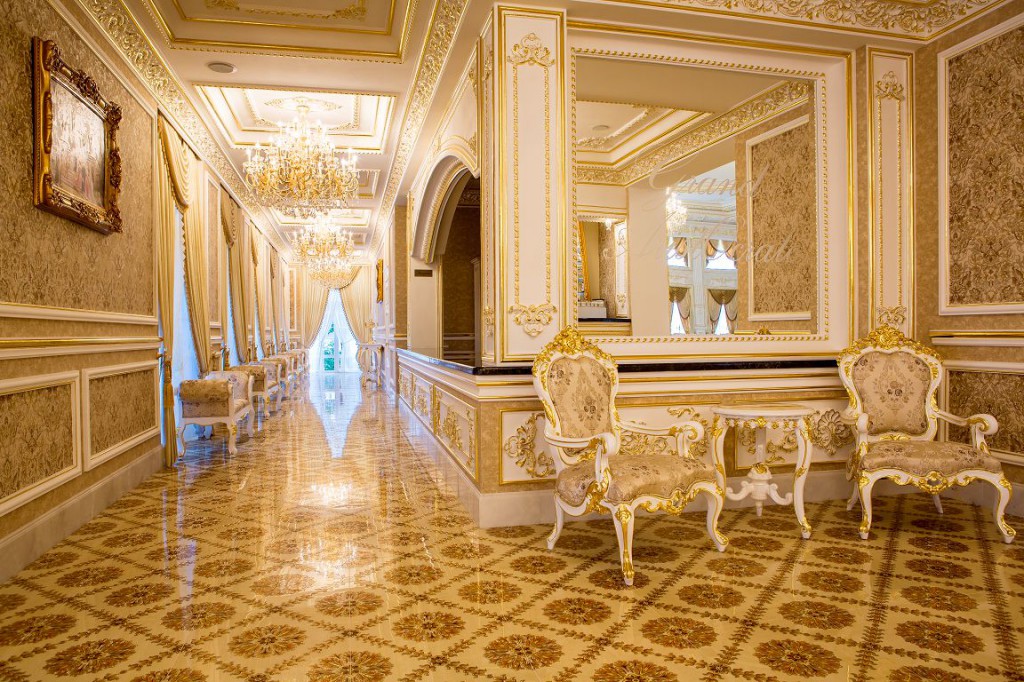 Название ресторана в полной мере соответствует его роскошному интерьеру. Кроме того, в ресторане есть летняя терраса, мангал, шашлыки, гриль. В меню гостям предлагаются изысканные блюда европейской и украинской кухонь.
