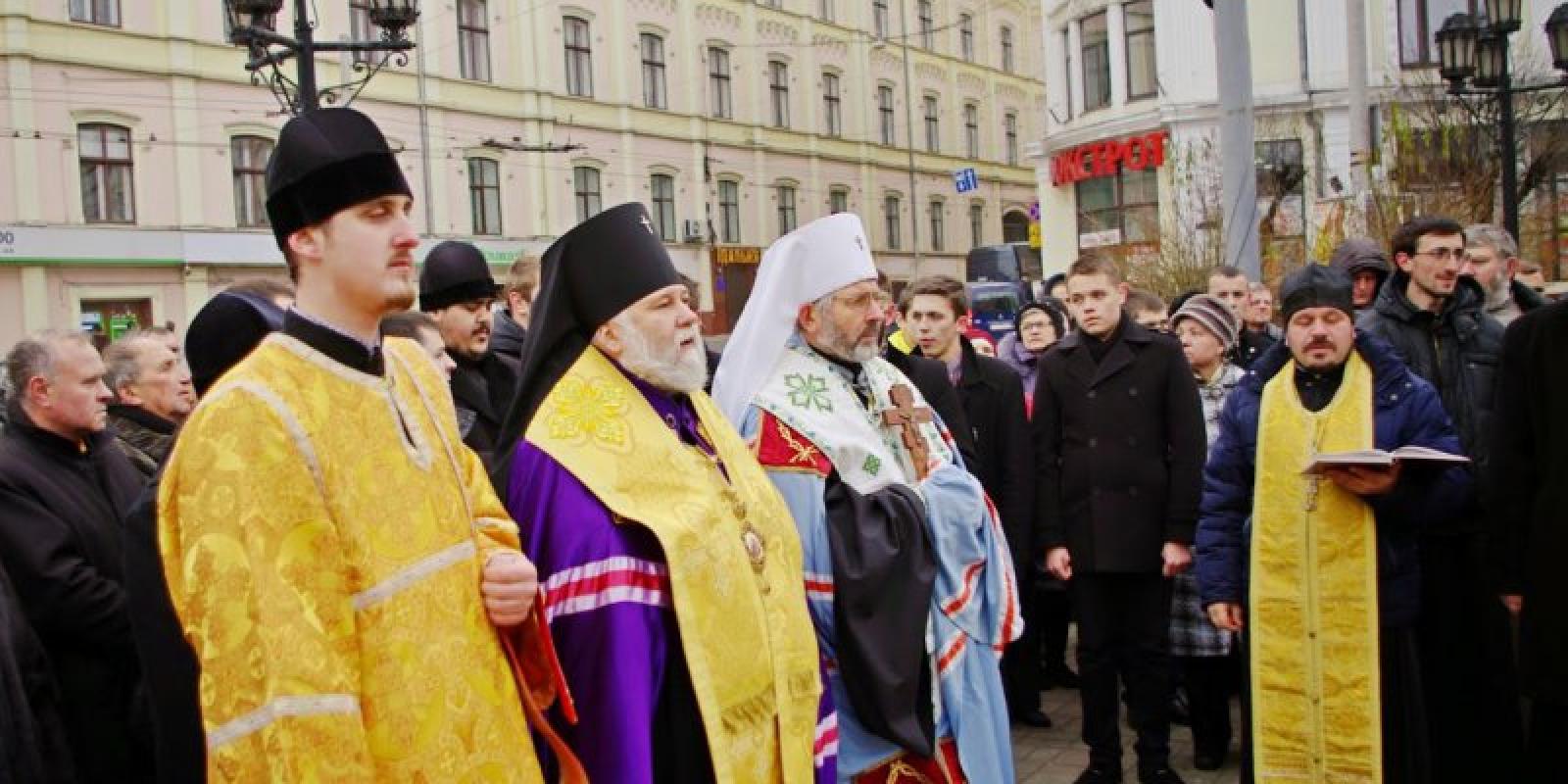Митрополит Чернівецький і Буковинський Данило, архієпископ Чернівецький і Кіцманський Онуфрій звершили молебень за встановлення миру на Україні.