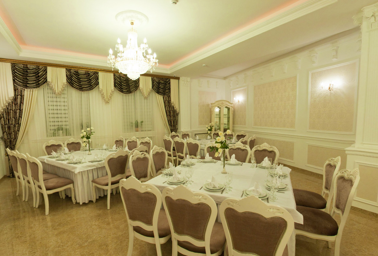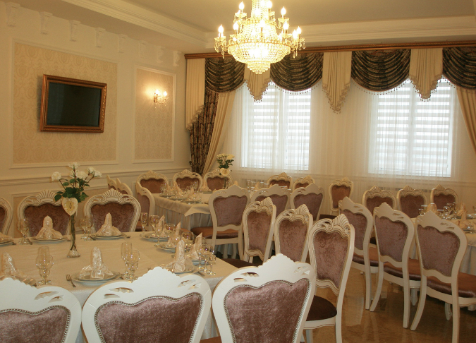 Меню включає страви української та європейської кухні.Так як в ресторані дуже часто відбуваються маштабні святкування талановиті кухарі склали спеціальне банкетне меню з додаванням авторських страв.